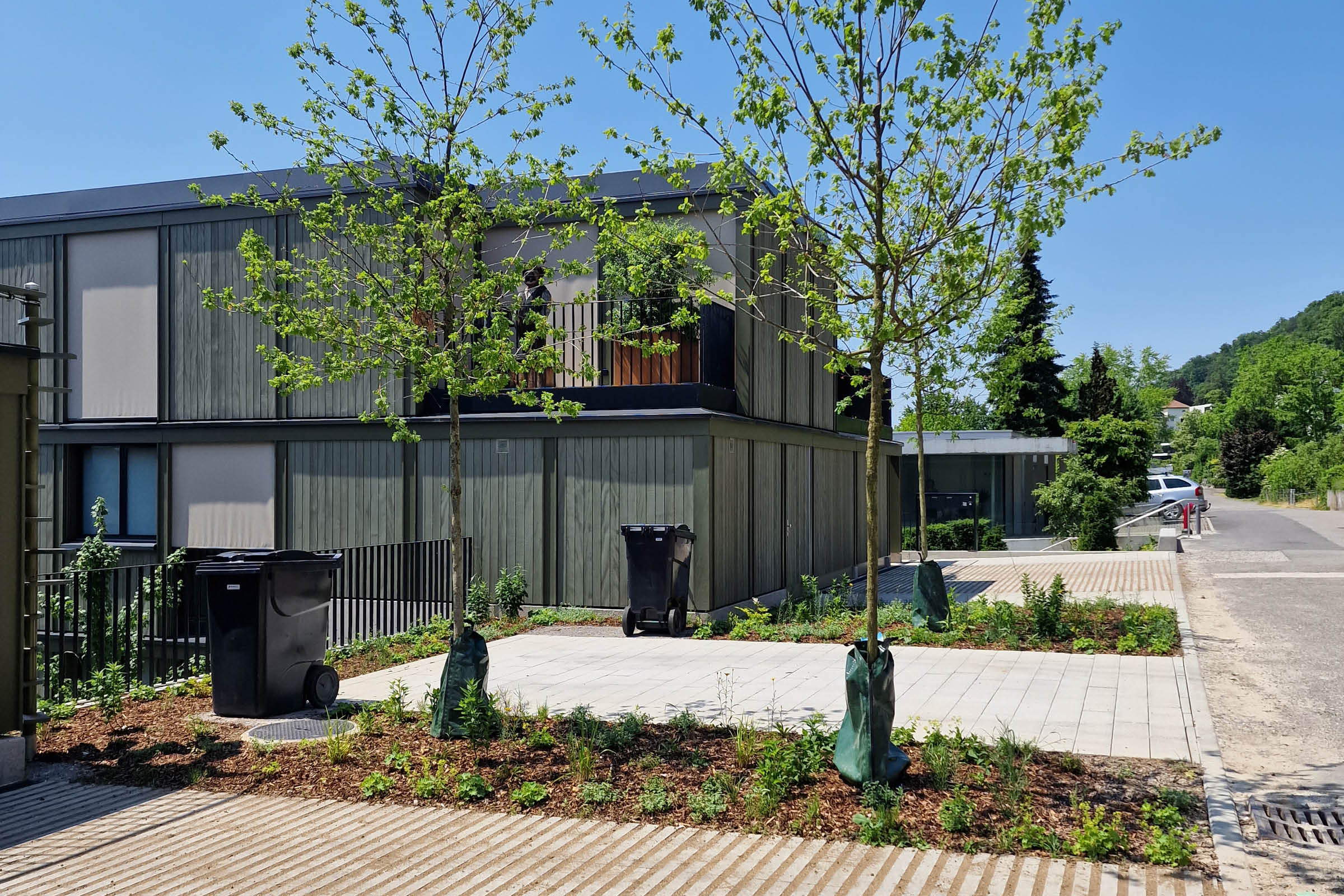 Am Wettinger Südhang der Lägeren entstehen auf zwei Grundstücken zwei Mehrfamilienhäuser. Der gemeinsame Garten umschliesst die beiden Häuser und wird zum Ort der Begegnung.